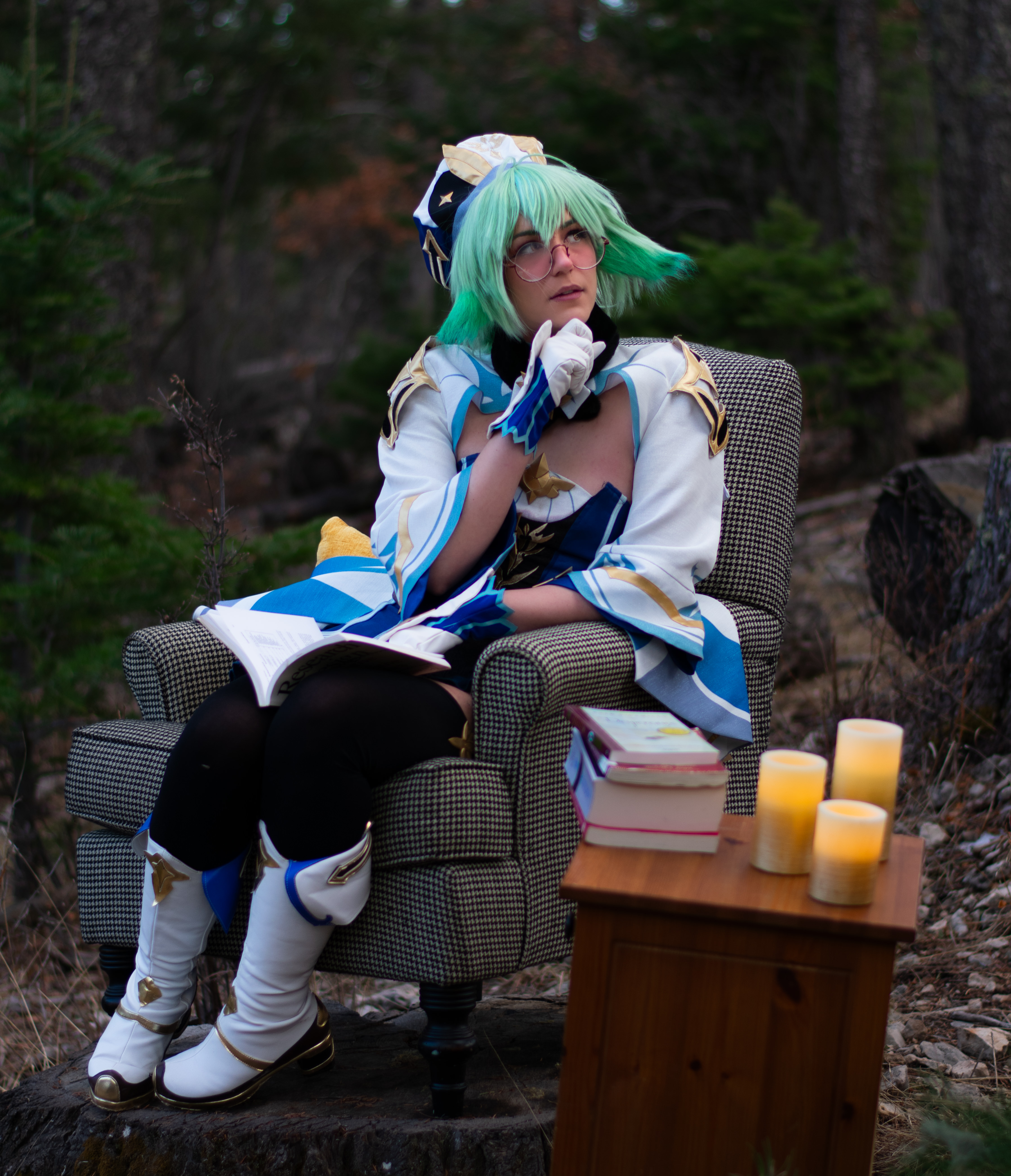 Dari was a fantastic cosplay model, embodying Sucrose’s personality and characteristics perfectly. She posed with books and studied various elements in the woods, bringing a sense of whimsy and magic to each shot. Despite being in the woods, she remained completely focused and dedicated to her art, never breaking character or losing sight of the story we were trying to tell through our images.